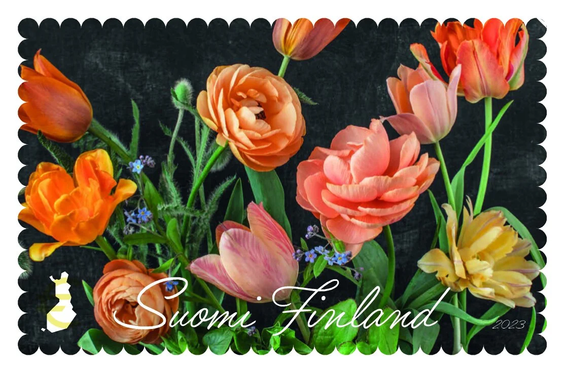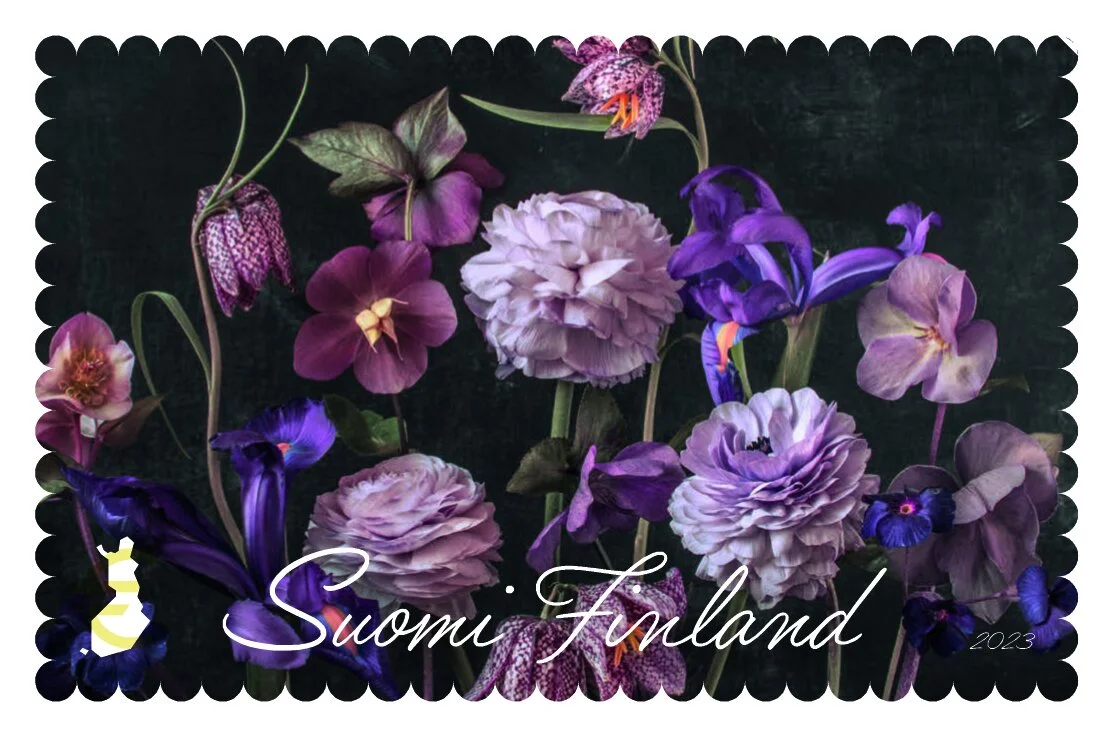 These two designs are a little bit different compared to my previous work. There are less flowers and they are horizontal. The reason is the small size of the postal stamp. It was quite challenge to make something so different. No layered flowers and vertical form. It was a very interesting journey and I learned a lot and I love how I had to challenge myself. One of the designs I made for the stamps will be in my upcoming exhibition Flora Favola in Poikilo museum. There will be 20 new photography works and two installation. That is the biggest exhibition I ever had. I hope you have time and possibility to come and see the exhibition. With me there is Heikki Marila’s gorgeous paintings. I am a big fan of his work. So this exhibition means a lot to me. Exhibition is open 21.9.2023 -7.1. 2024.